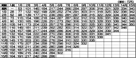 入通院慰謝料は、入院期間や通院期間に応じて、金額基準(相場)があり、その相場は、裁判所でも使用される、次のような早見表で確認することができます。